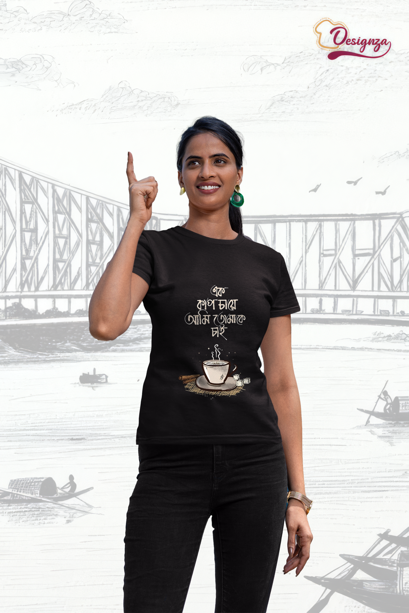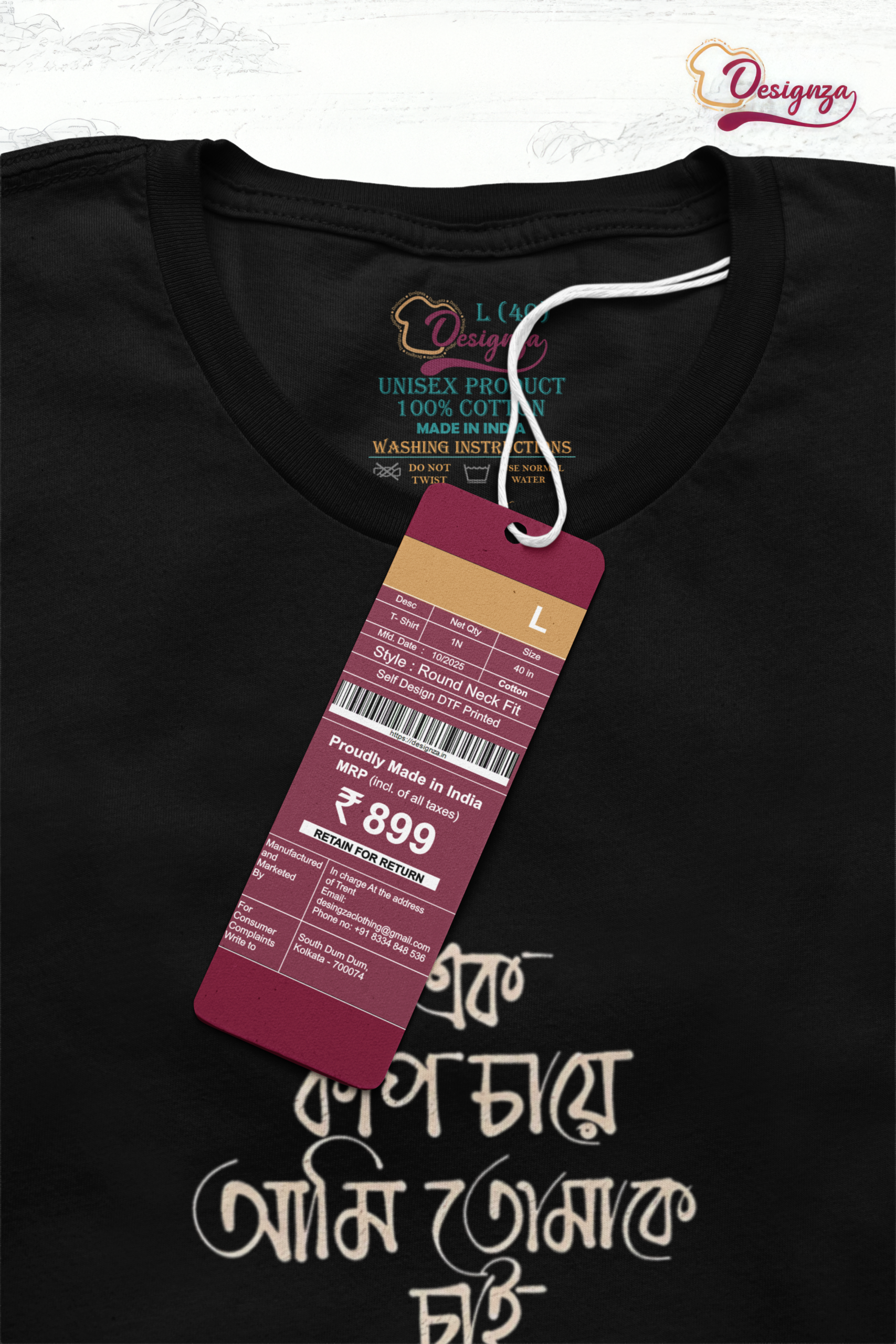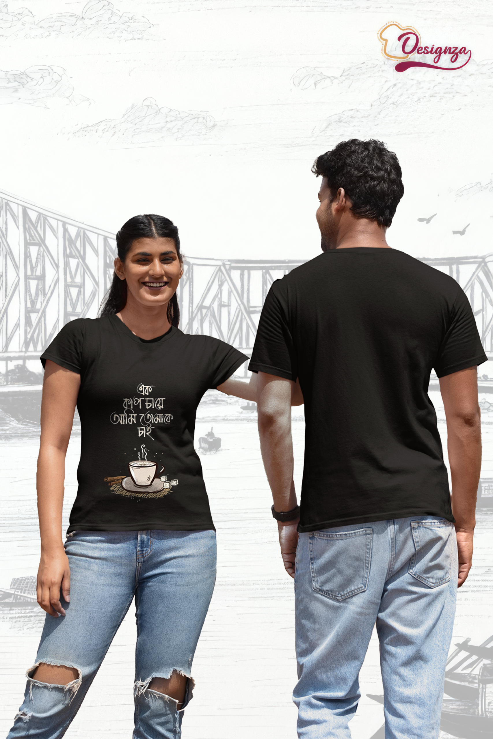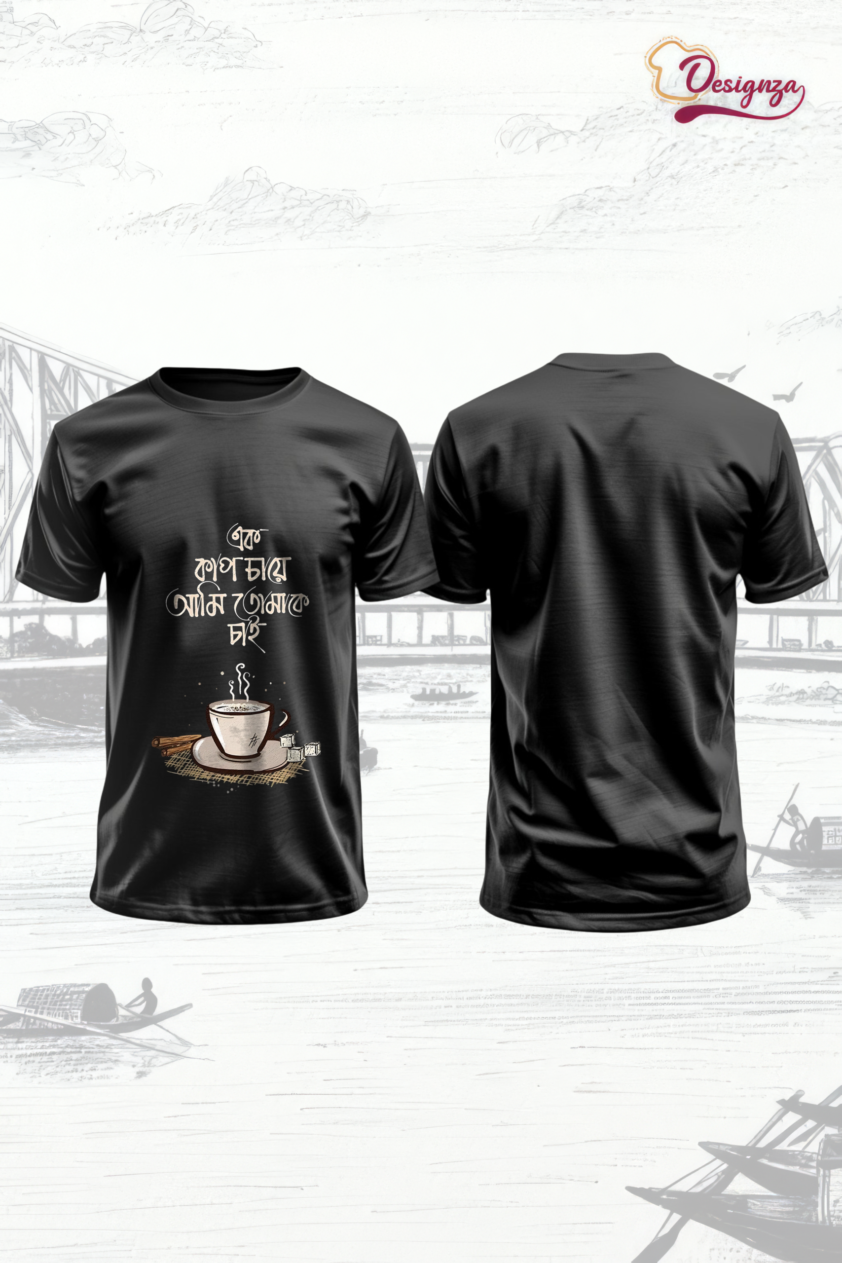 Ak Kap Chaya Ami Tomake Chai : A Bold Bengali Graphic Graphic Print Round Neck Pure Cotton Black T-Shirt