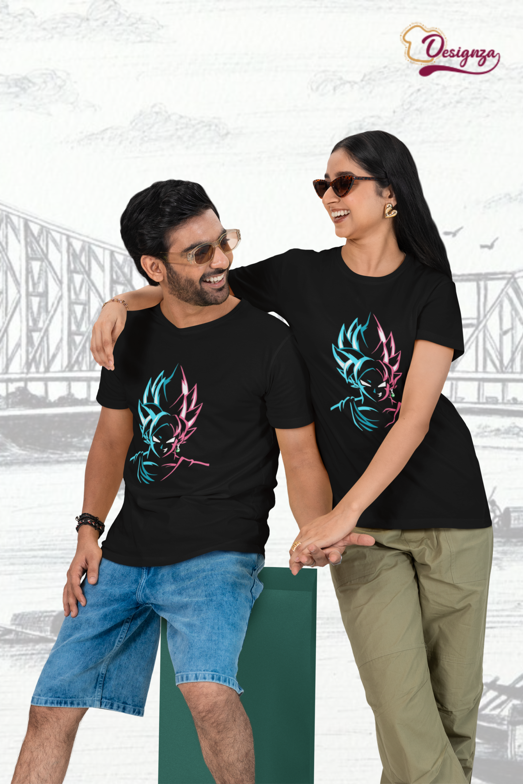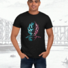 Designza Unisex Black 100% Cotton T-Shirt with Neon Blue Pink Anime Character Graphic Print, Short Sleeve, Round Neck 448.00