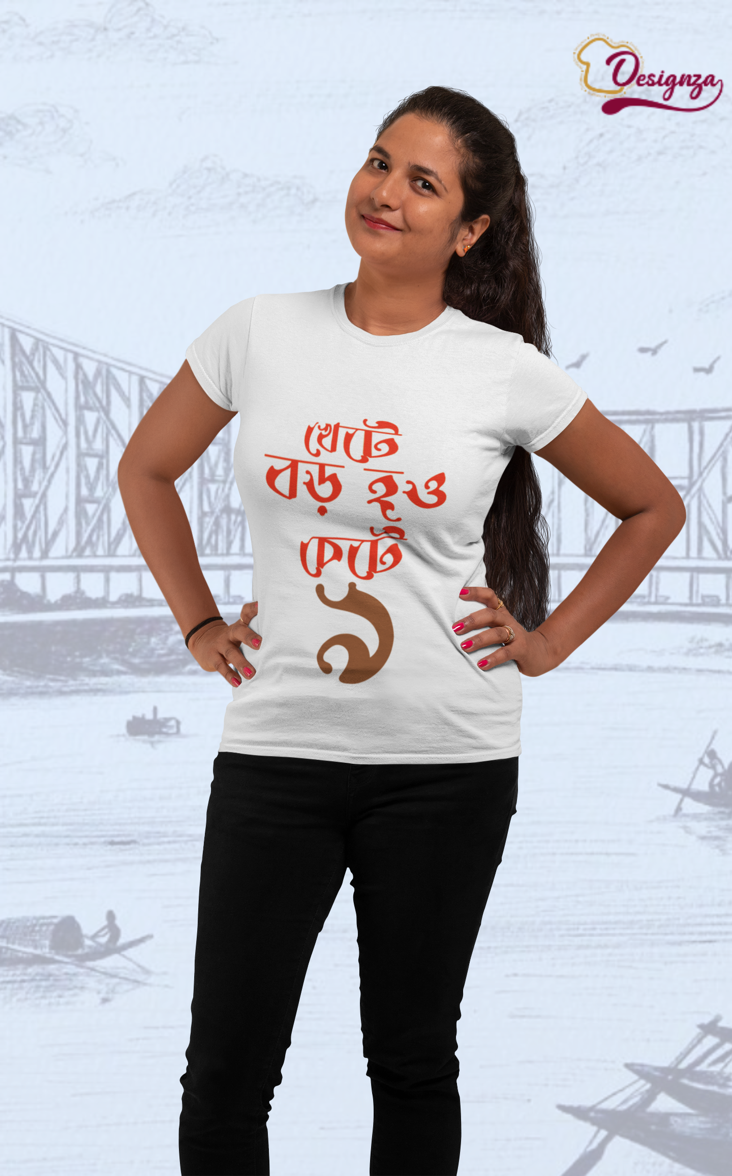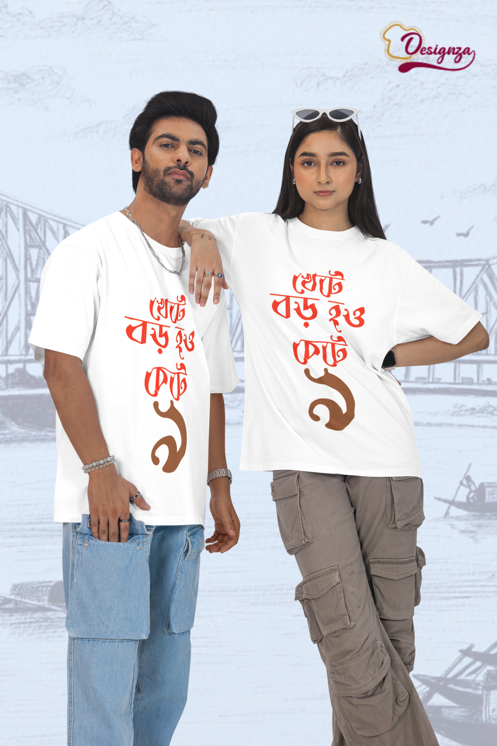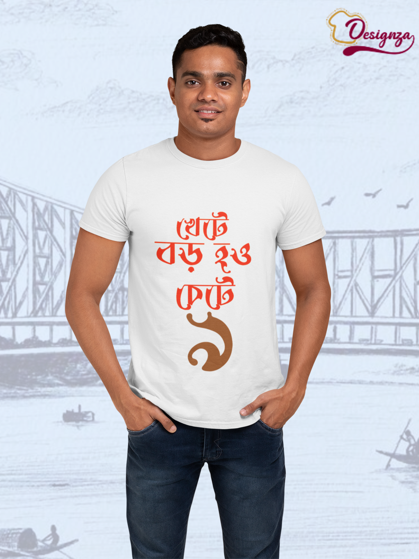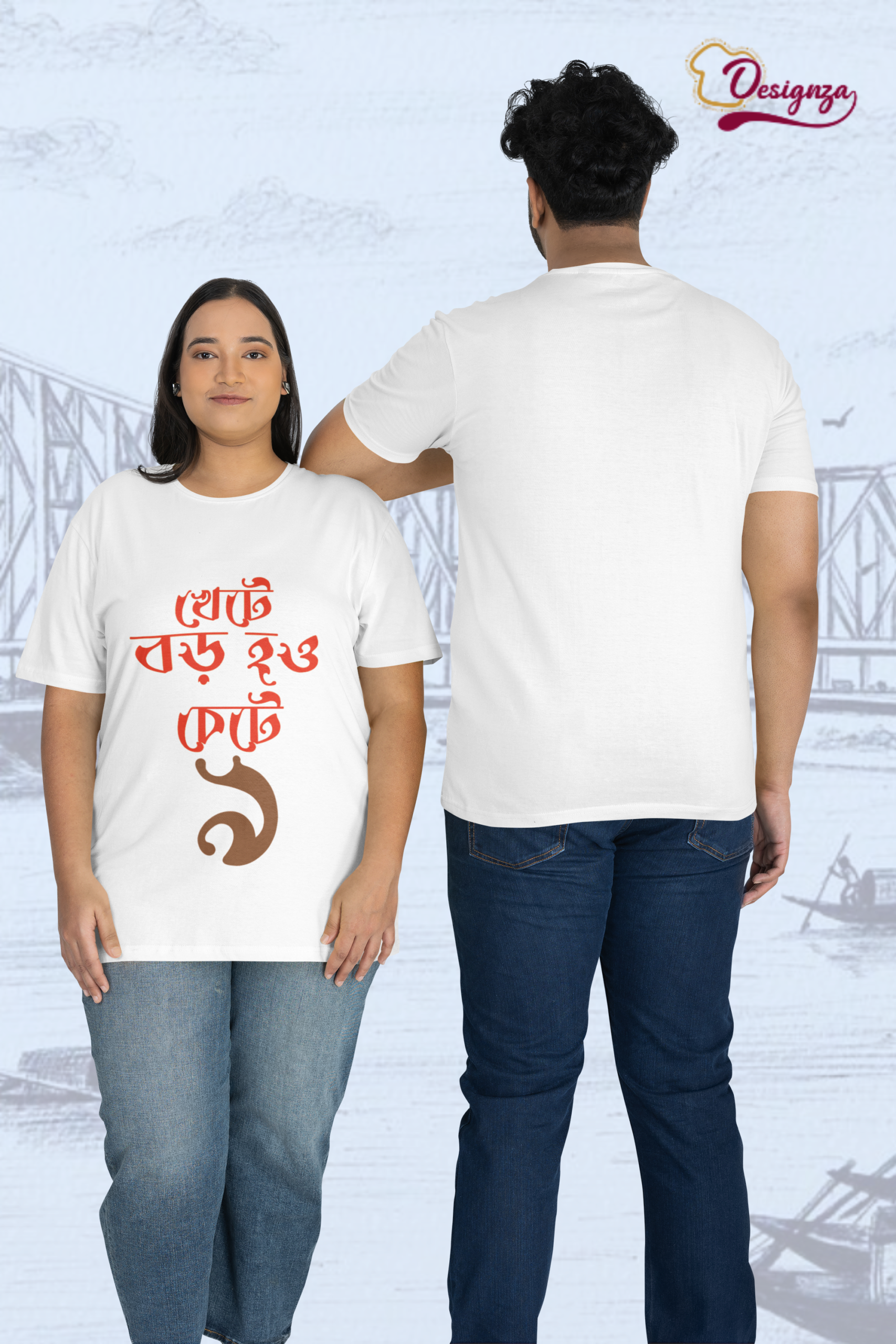 Express your cultural pride with this Designza Unisex White T-Shirt, featuring a bold and eye-catching Bengali script graphic print on the front. Crafted from 100% pure cotton, this comfortable round-neck tee offers a soft feel against the skin, making it ideal for everyday wear. The striking red and brown Bengali typography design adds a unique and artistic touch, making it a perfect conversation starter. The classic white base allows the vibrant print to stand out beautifully, giving you a stylish yet culturally rooted look. Suitable for both men and women, this unisex tee pairs effortlessly with jeans, trousers, or shorts for a casual, relaxed outfit. Whether you are heading out with friends, attending a cultural event, or simply lounging at home, this t-shirt is a versatile wardrobe essential. The breathable cotton fabric ensures comfort throughout the day, even in warm weather. Please refer to the size chart before placing your order to ensure the best fit. Machine washable for easy care and maintenance.