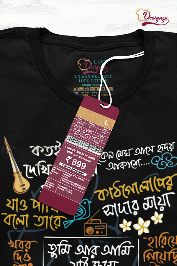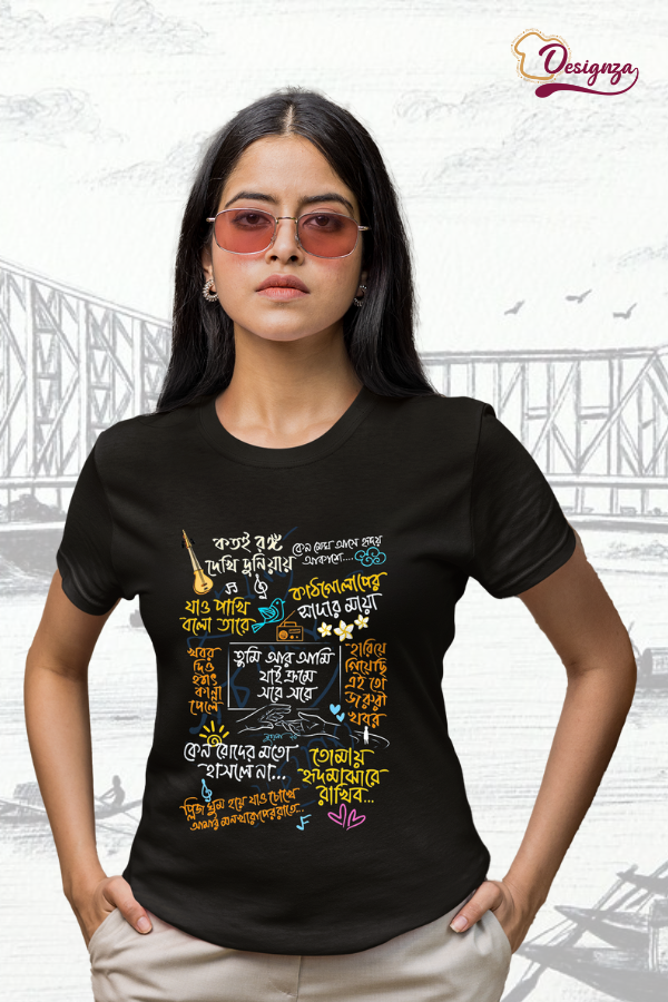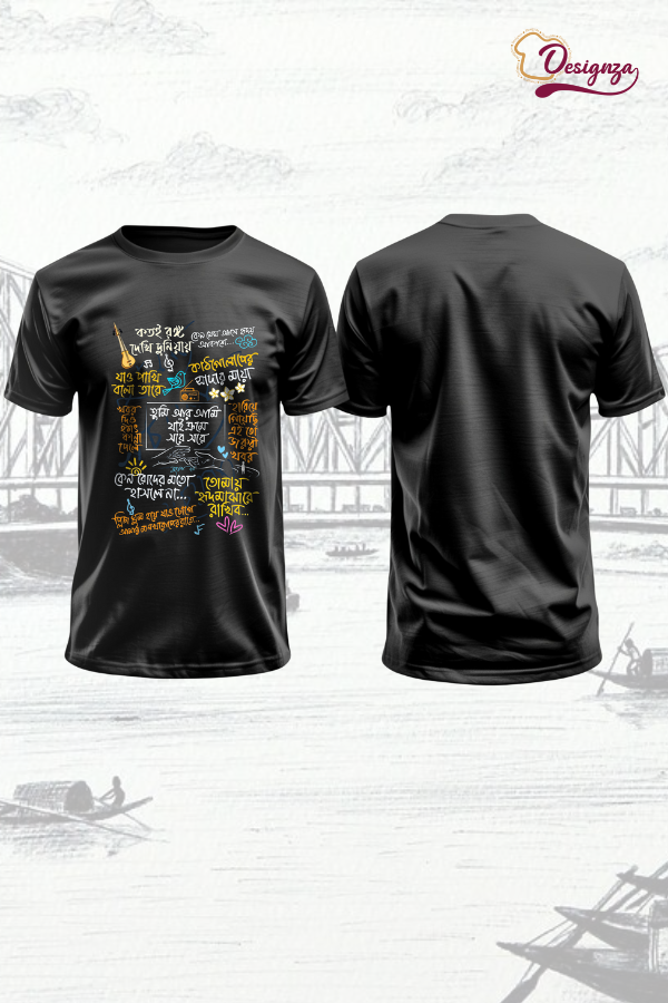 Koto Rongo Dakhi Duniyai Bengali Typography T-Shirt, Black, Graphic Print, Pure Cotton, Casual Wear 448.00