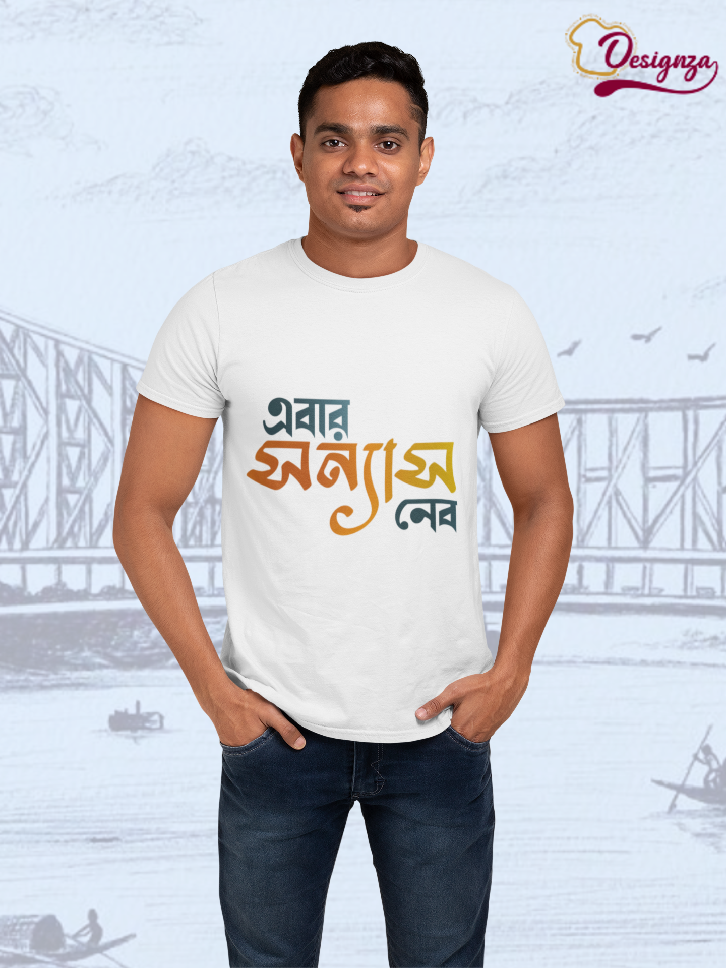 Stand out with confidence and attitude in this Bengali typography t-shirt featuring the bold phrase “ এবার সন্ন্যাস নেব ”. Designed for those who carry a fearless vibe, this tee reflects personality, style, and cultural expression in one clean look.