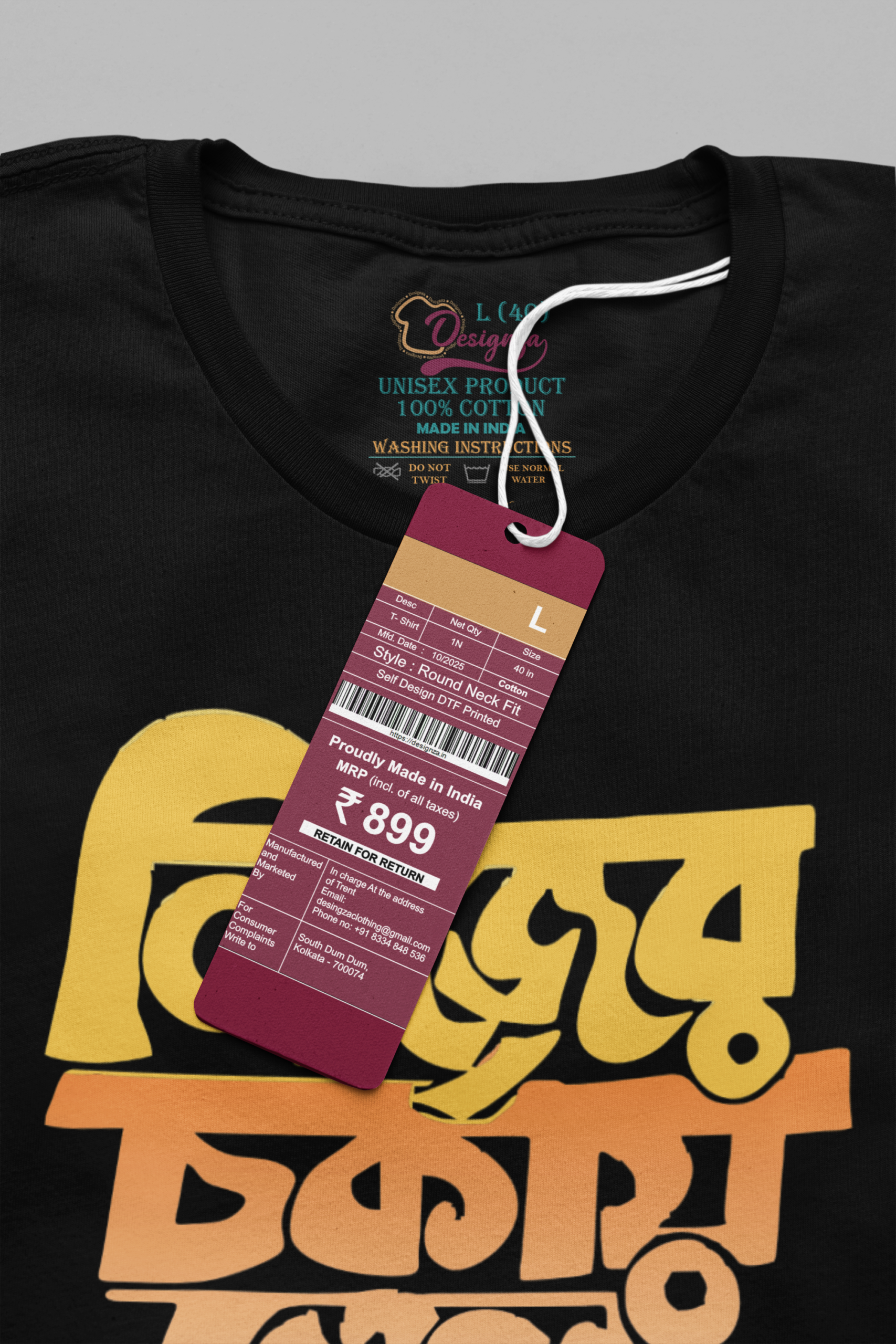Unisex Bio-Wash Pure Cotton Bengali Typography “পূজা” Printed T-Shirt